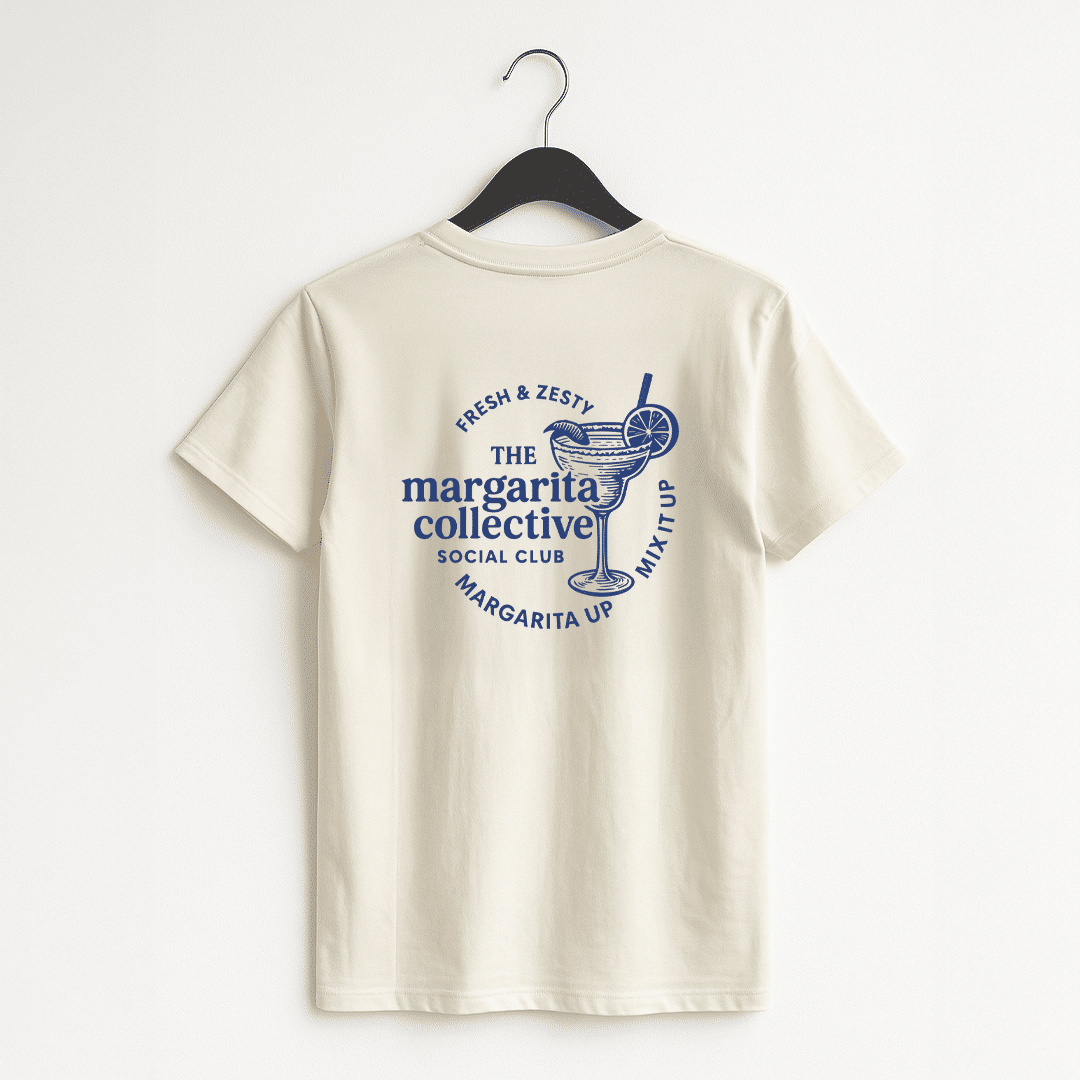 Sur le devant, un verre iconique au style gravure vintage donne le ton : zesté, équilibré, avec une touche de piquant. Au dos, le visuel “The Margarita Collective – Margarita Up / Mix It Up” s’impose avec audace et élégance, imprimé à la main dans un violet profond. Fabriqué en France dans un coton épais ultra confortable, ce t-shirt unisexe allie qualité, style et clin d’œil assumé à l’un des cocktails les plus mythiques au monde. Un essentiel pour les amateurs de tequila… et de bonne vibes.
